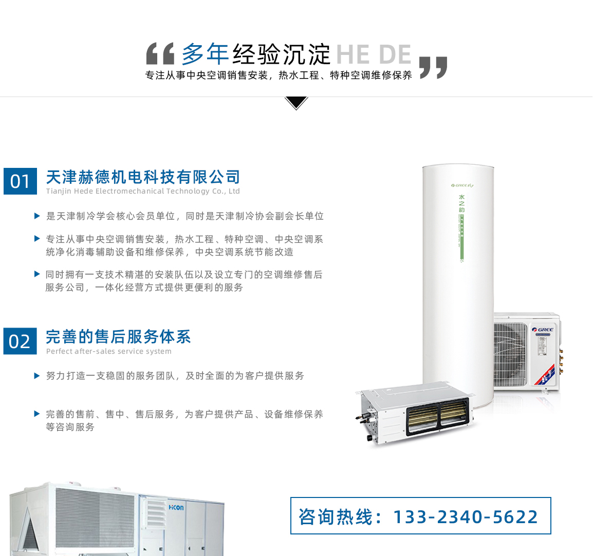 天津赫德機電科技有限公司是天津制冷學(xué)會會員單位,同時是天津制冷協(xié)會副會長單位,位于天津市海泰經(jīng)濟區(qū),依托天津制冷學(xué)會團隊資源從事中央空調(diào)銷售安裝,熱水工程、特種空調(diào)、中央空調(diào)系統(tǒng)凈化消毒輔助設(shè)備和維修保養(yǎng),中央空調(diào)系統(tǒng)節(jié)能改造。赫德機電致力于綠色建筑暖通,低能耗解決用戶冷暖,全心全意為用戶負(fù)責(zé),讓大地更綠天空更藍(lán)。企業(yè)服務(wù)宗旨:做綠色建筑暖通,低能耗解決用戶冷暖,全心全意為用戶負(fù)責(zé),讓大地更綠天空更藍(lán)。